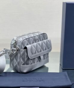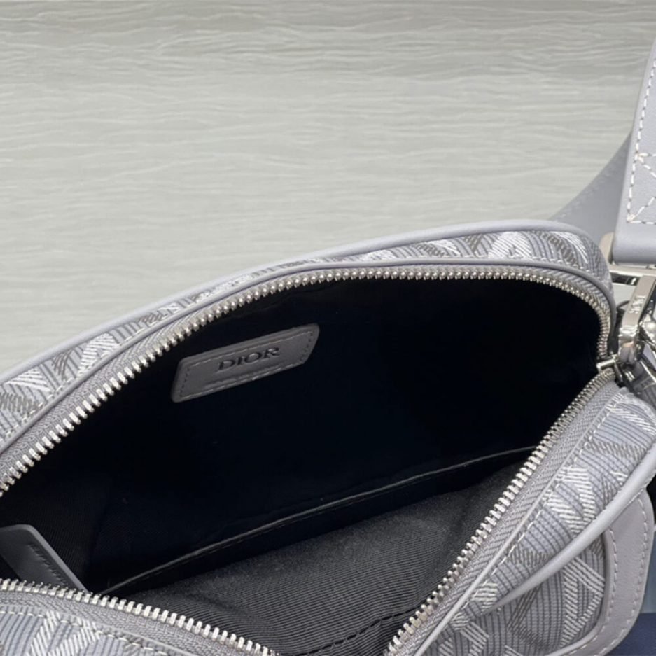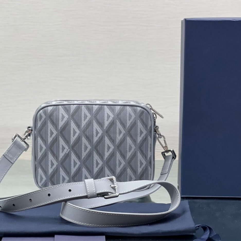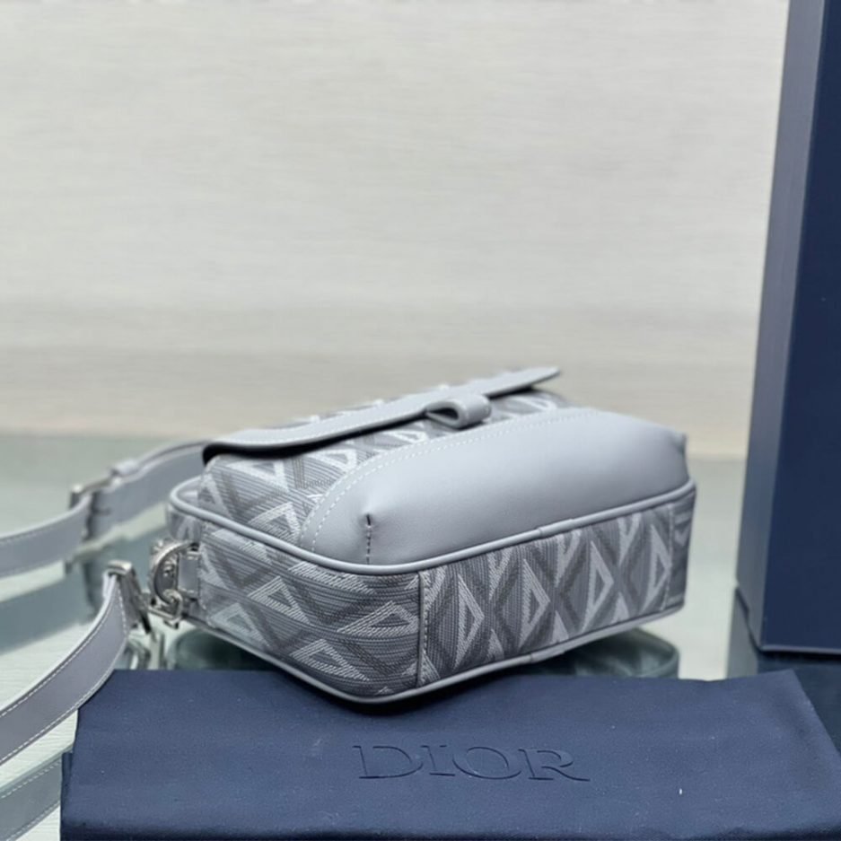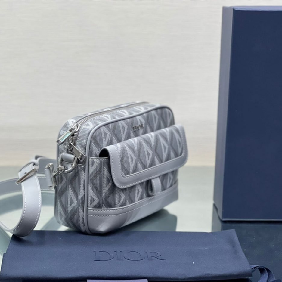 Dior gray CD Diamond canvas and smooth calfskin
