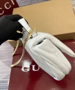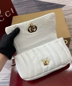 1 zip pocket with GG charm, 1 open pocket and 1 lipstick holder compartment