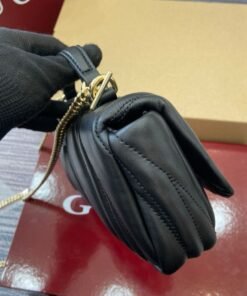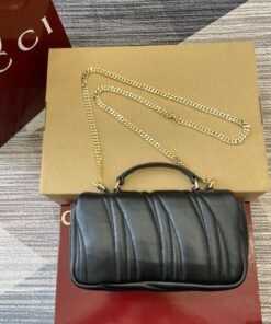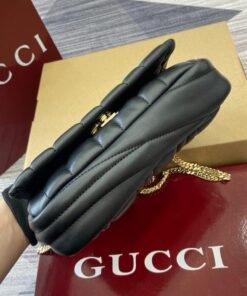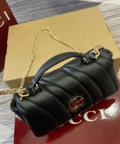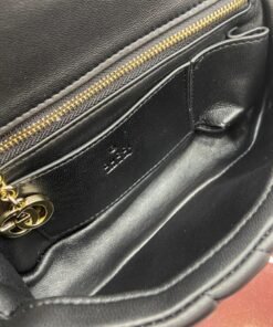 1 zip pocket with GG charm, 1 open pocket and 1 lipstick holder compartment