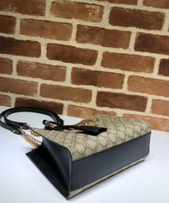Beige and ebony GG Supreme canvas with metallic cherry and strawberry print, a material with low environmental impact