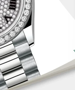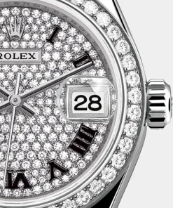The light reflections on the case sides and lugs highlight the elegant profile of the?28 mm Oyster case, which is fitted with a?diamond-set bezel. Rolex’s classic feminine watch, the Lady-Datejust is in the lineage of the Datejust, the emblematic model that has been a byword for style and accurate timekeeping.