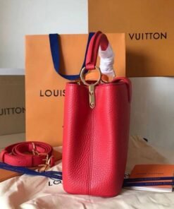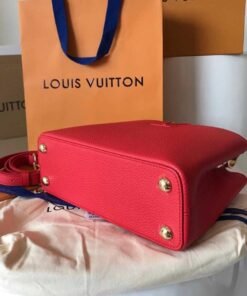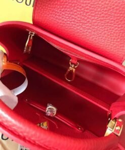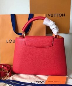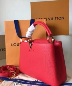 Named for the Rue des Capucines in Paris, where Louis Vuitton opened for business in 1854, the Capucines MM handbag was first introduced in 2013. Superbly crafted from full-grain Taurillon leather, it features a flap which can be worn two ways: outside to reveal a Monogram Flower, or inside to display the leather-wrapped LV Initials. Light enough to carry all day long, by hand, on the shoulder or worn cross-body with the detachable strap.