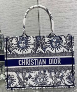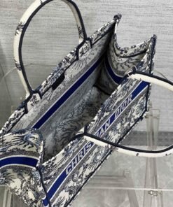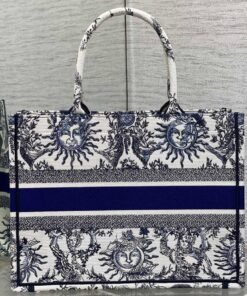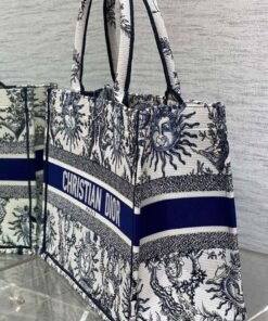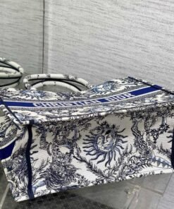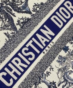 White and Navy Blue Toile de Jouy Soleil Embroidery (36 x 27.5 x 16.5 cm)