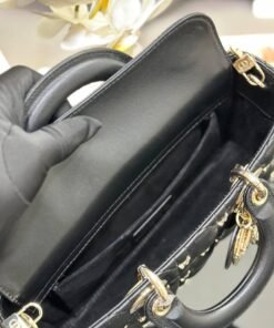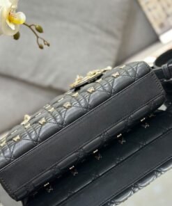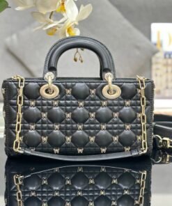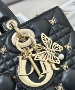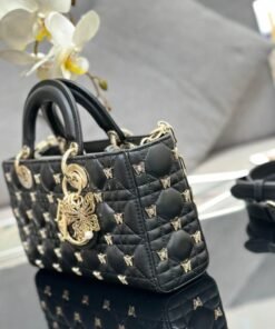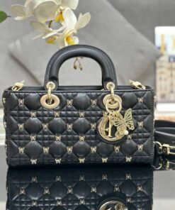 Black Cannage Lambskin with Gold-Finish Butterfly Studs