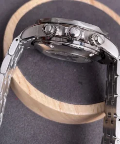 - Self?winding chronograph, chronometer movement with rhodium?plated finish.