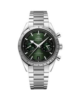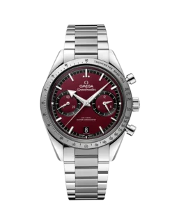 The brushed bezel includes a blackened tachymeter scale, while on the caseback, there is a ??Speedmaster ??57?? engraving as well as a flat sapphire crystal with an anti-reflective treatment inside.