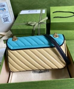 Sliding chain strap can be worn as a shoulder strap with 22?? drop, as a top handle with 12?? drop or as a cross body bag.