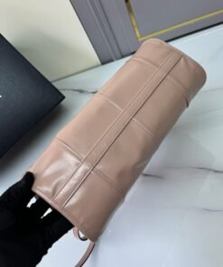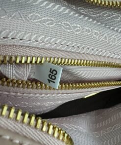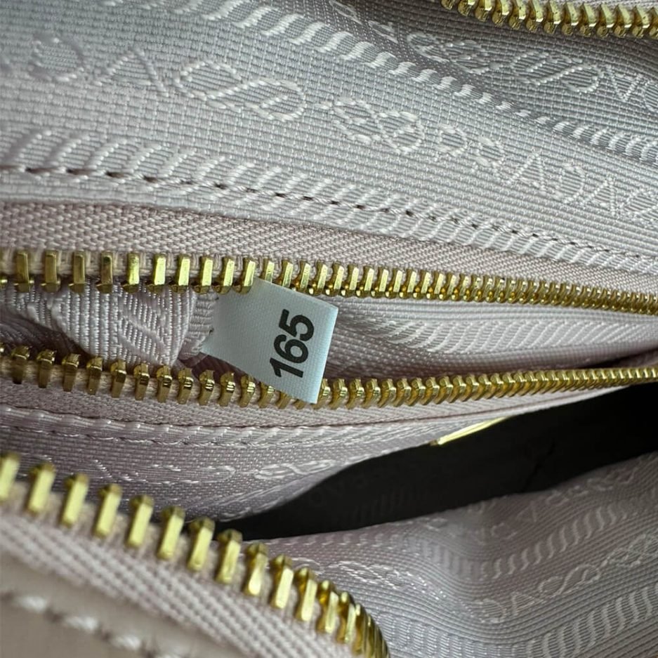 Nappa and nylon interior with center zipper compartment and zipper patch