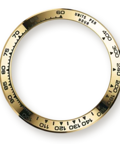 - Fixed, with engraved tachymetric scale, in 18 kt yellow gold