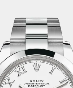 THIS OYSTER PERPETUAL DATEJUST 41 IN OYSTERSTEEL FEATURES A WHITE DIAL AND AN OYSTER BRACELET.