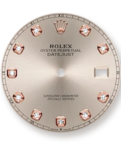 THIS OYSTER PERPETUAL DATEJUST 41 IN OYSTERSTEEL AND EVEROSE GOLD FEATURES A SUNDUST, DIAMOND-SET DIAL AND AN OYSTER BRACELET.
