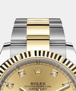 THIS OYSTER PERPETUAL DATEJUST 41 IN OYSTERSTEEL AND YELLOW GOLD FEATURES A CHAMPAGNE COLOUR, DIAMOND-SET DIAL AND AN OYSTER BRACELET.