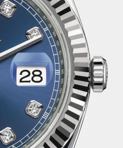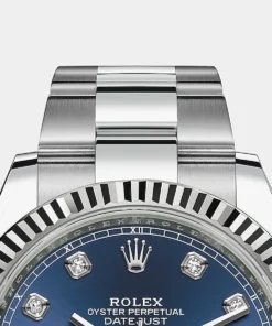 THIS OYSTER PERPETUAL DATEJUST 41 IN OYSTERSTEEL AND WHITE GOLD FEATURES A BRIGHT BLUE, DIAMOND-SET DIAL AND AN OYSTER BRACELET.