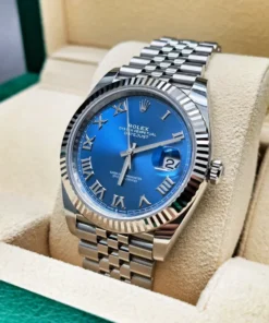 THIS OYSTER PERPETUAL DATEJUST 41 IN OYSTERSTEEL AND WHITE GOLD FEATURES AN AZZURRO-BLUE DIAL AND A JUBILEE BRACELET.