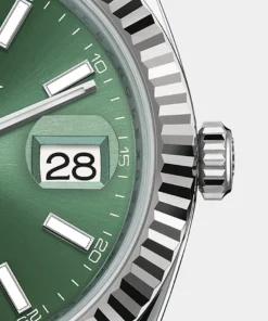 - Scratch-resistant sapphire, Cyclops lens over the date