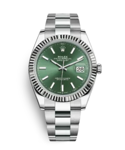 The light reflections on the case sides and lugs highlight the elegant profile of the 41 mm Oyster case, which is fitted with a fluted bezel. Aesthetically, the Datejust has spanned eras, while retaining the enduring codes that make it, notably in its traditional versions, one of the most recognized and recognizable of watches.