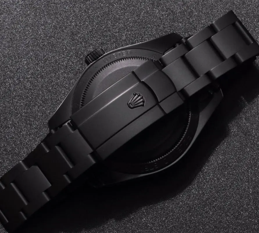 There is a special black coating on the case and chain strap, so that the whole watch looks like a foggy black fashion style. Since the base 116400 of the watch is the version before the green glass is replaced, the edge of the mirror surface will not show through. The green light of the signboard. As for the dial, this watch changed its dial to dark gray with the blackening of the case. In addition, the luminous paint on the hour markers and hands was also changed to black, and the original orange lightning needle of the watch was also changed.?