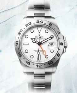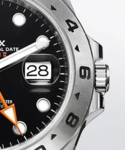 The Explorer II features a date display, an additional orange 24-hour hand and a fixed bezel with 24-hour graduations, enabling day to be distinguished from night. It became the watch of choice for speleologists, volcanologists and polar explorers.