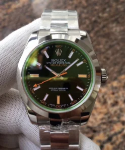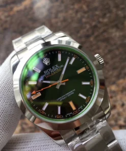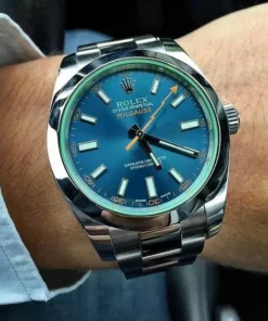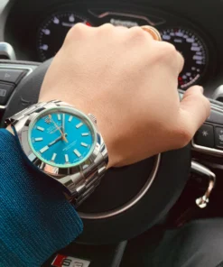 The Oyster Perpetual Grid magnetic type is matched with an electro-optical blue dial and luminous hour markers. The green crystal mirror reduces light reflection and keeps the display clear.