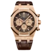 This 38 mm Chronograph is endowed with the new Royal Oak design evolution. The pink gold case and bracelet are contrasted with a ??Grande Tapisserie?? dial adorning the iconic Bleu Nuit, Nuage 50 hue.