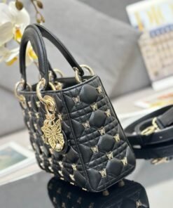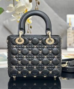Black Cannage Lambskin with Gold-Finish Butterfly Studs