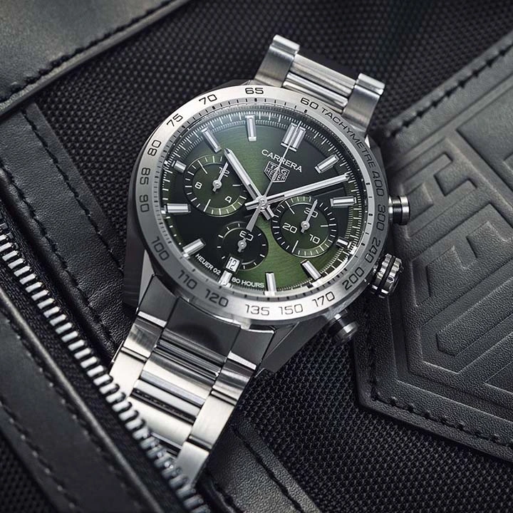 Powered by our in-house Heuer 02 movement, an automatic column-wheel chronograph movement ?C signatures of improved chronograph timekeeping and high-quality manufacture movements – with 80-hour power reserve.