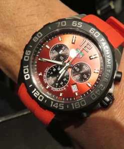 With an unmistakable vivid red sunray brushed dial and matching rubber strap, this fast-moving chronograph is ready to roar ahead in style.