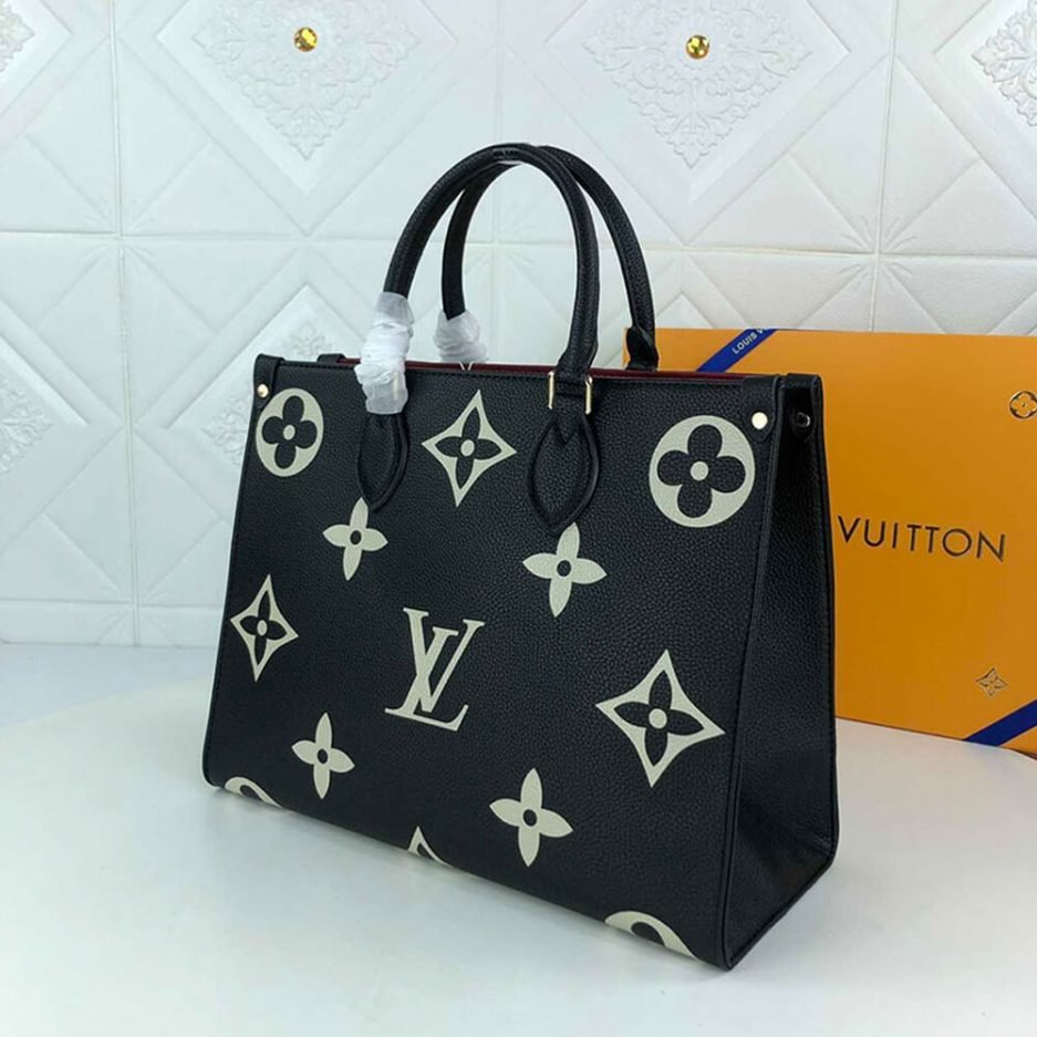 The OnTheGo GM tote bag in embossed leather is adorned with an Giant version of the iconic Monogram pattern. Braided top handles and eye-catching detailing around the handle mounts bring a touch of the street to this bag. The roomy interior, with its numerous inside pockets, make it perfect for everyday wear.